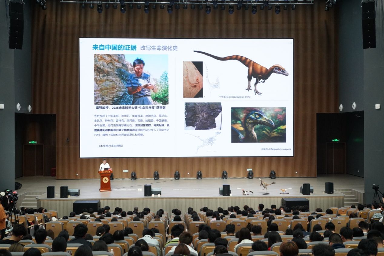 报告会伊始,校长任家东教授代表学校致辞。他首先向季强教授荣获2025年未来科学大奖表示最热烈的祝贺,并对其在鸟类起源研究领域作出的开创性、里程碑式的贡献给予了高度评价。任家东指出,季强教授团队在恐龙向鸟类演化关键环节取得的系列重大发现,不仅解决了长期困扰国际学界的难题,极大提升了我国在该领域的国际学术影响力,更生动诠释了追求真理、严谨治学、勇于探索的科学精神。他深情勉励在场青年学者和学子,要以季强教授等优秀科学家为榜样,坚守科研初心,敢于挑战权威,勇攀科学高峰,为实现高水平科技自立自强贡献青春力量。