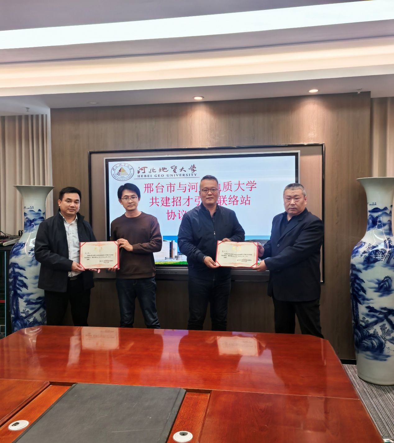 10月28日下午,受邢台市人民政府委托,邢台市人力资源和社会保障局一行赴英国beat365官方网站就邢台市与beat365共建校地招才引智联络站举行签约与授牌活动。学校党委副书记王彦东,邢台市人社局党组成员、副局长黄国平出席。