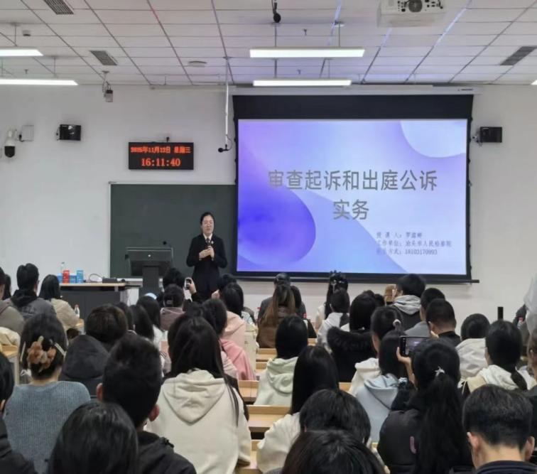 依托河北省人民检察院“检察实务专家进校园”活动,开展法治实务讲座。特邀泊头市人民检察院一级检察官罗溶婷以“审查起诉与出庭公诉实务”为题,引导学生沉浸式体验检察官办案流程,围绕身份审查、事实认定、证据判断等实体审查核心,结合鲜活案例拆解法律适用逻辑,提出“正义不仅在判决书的法理中,更在为当事人追寻公平的执着里”,引发全场共鸣。沧州市人民检察院一级检察官郑雅静则聚焦“从知法者到执法者:法律思维养成与检察职业培塑”,结合于欢案、昆山龙哥案等典型案例,从检察工作内容、实务挑战、素养培育三方面展开,鼓励学子夯实理论、关注现实。两场讲座以实务为桥,助学生深化法律认知,拓宽了学习平台。