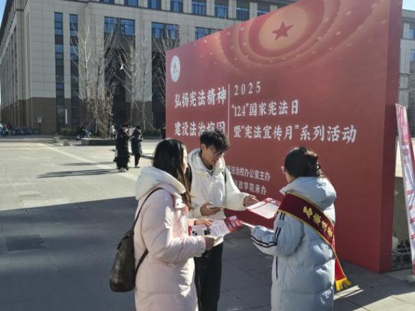 学校组织师生在石家庄市文化广场开展国家宪法日宣传活动,以贴近群众生活的形式普及宪法知识,吸引市民参与,有效推动宪法精神走进基层、深入人心,营造了全民学法、知法、守法、用法的良好氛围。