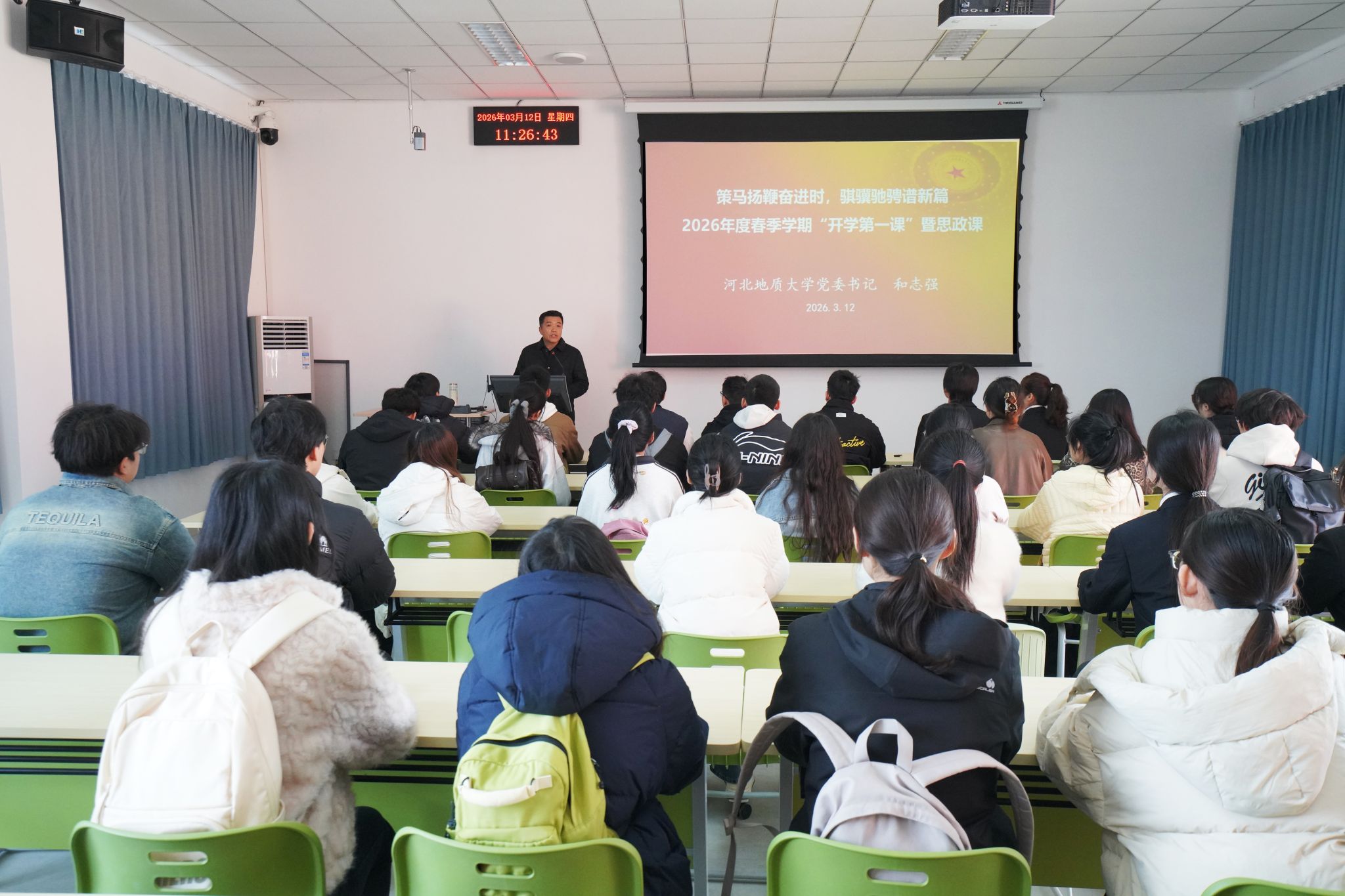 下午,校长任家东聚焦产教深度融合主题,为地质类大三专业学生讲授“开学第一课”暨思政课。他回顾了学校七十余年的办学成就,讲述了以五位院士为代表的杰出校友为国家发展作出的重要贡献。他指出,面对新一轮科技革命和产业变革,培养适应新质生产力要求的创新人才,必须走产教深度融合之路。他向同学们发出三点倡议:一要转变观念,主动拥抱实践,摒弃“重理论、轻实践”的固有思维,积极参与企业实习、项目攻关等活动;二要脚踏实地,锤炼过硬本领,带着问题学习、带着责任实践,在反复打磨中提升专业技能和创新思维;三要胸怀大局,勇担时代使命,将个人成长融入国家发展和行业进步大局,借助产教融合的平台,立足专业特色,锤炼报国本领,践行“服务国家、奉献社会”的初心,成为推动地质行业转型升级、助力地方高质量发展的青春力量。