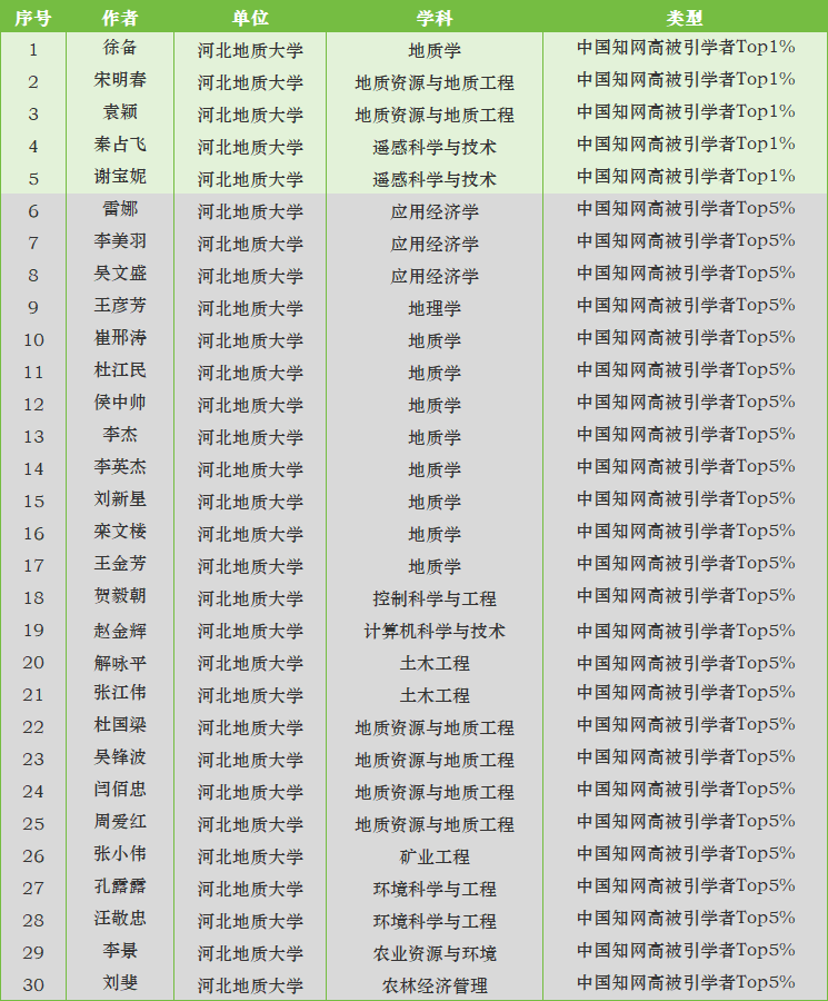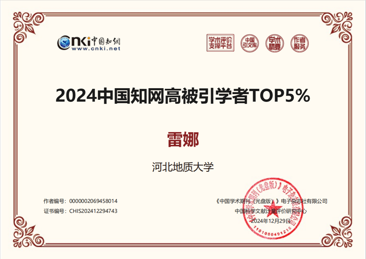 近日,中国知网中国科学文献计量评价研究中心公布了“2024中国知网高被引学者”预发布名单,beat365有30位教师入选。其中5位教师入选高被引学者Top1%,25位教师入选高被引学者Top5%,主要集中在地质学、地质资源与地质工程、遥感科学与技术、应用经济学等学科方向。