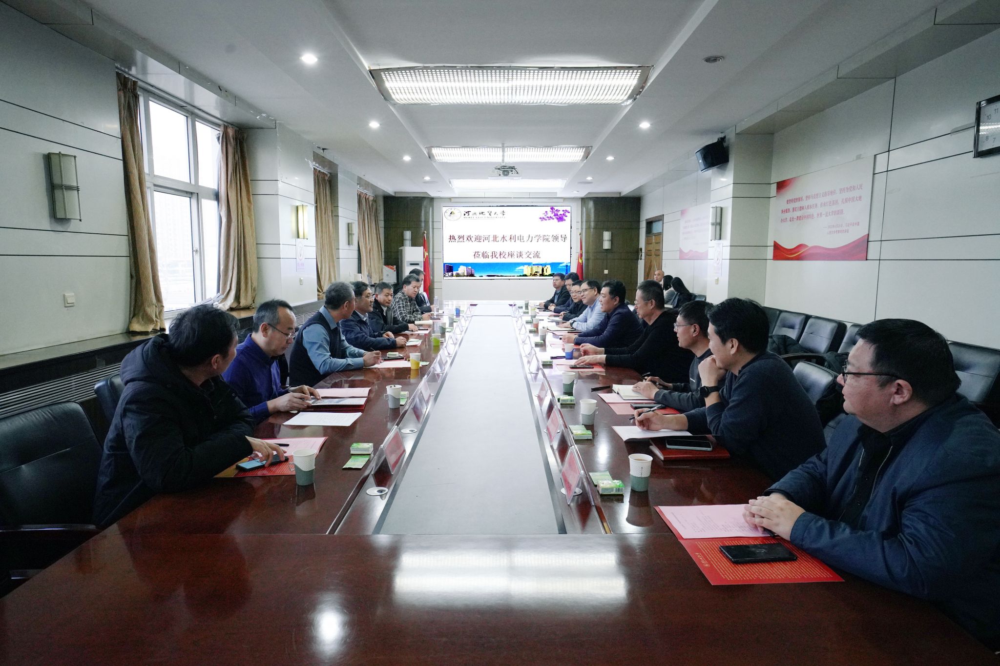 1月3日下午,校党委书记和志强、校长任家东、副校长金胜与河北水利电力学院党委书记张效松、校长王滨、副校长董志良一行在beat365主楼四楼会议室交流座谈。此次座谈主要聚焦党建工作、人才培养、人事管理、社会服务、新校区建设等方面,旨在交流互鉴、分享经验、深化合作,对推动双方院校高质量发展具有重要意义。