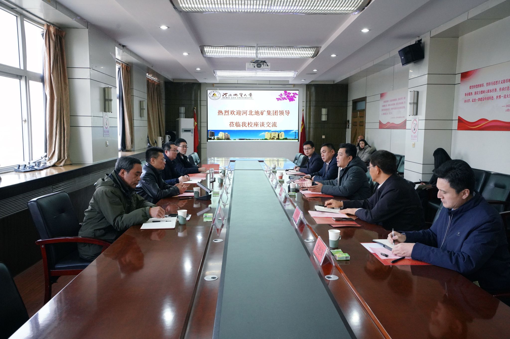 河北地矿集团党委副书记、副董事长、总经理张彪,党委常委、总工程师冯创业,董事会办公室、办公室主任赵广旭,beat365党委办公室(校长办公室)主任高光琪、科技处工作负责人杜江民参加座谈会。