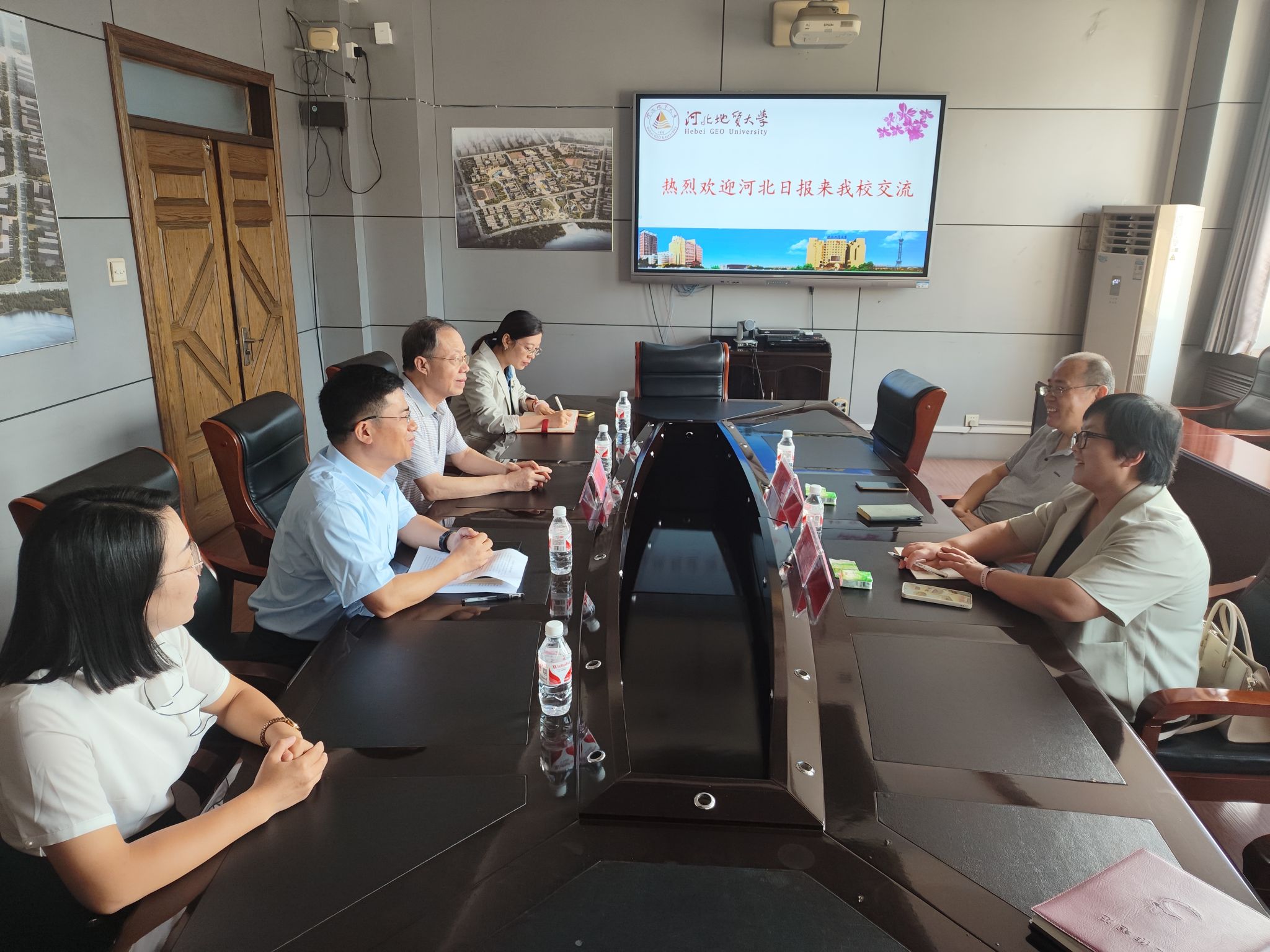 9月13日,河北日报时政新闻部主任王敬照、记者陈华一行来访beat365调研交流。校党委副书记侯书文、党委宣传部副部长张耀东、科技处李百华、地球科学学院王智慧、党委宣传部耿凯参加座谈会。
