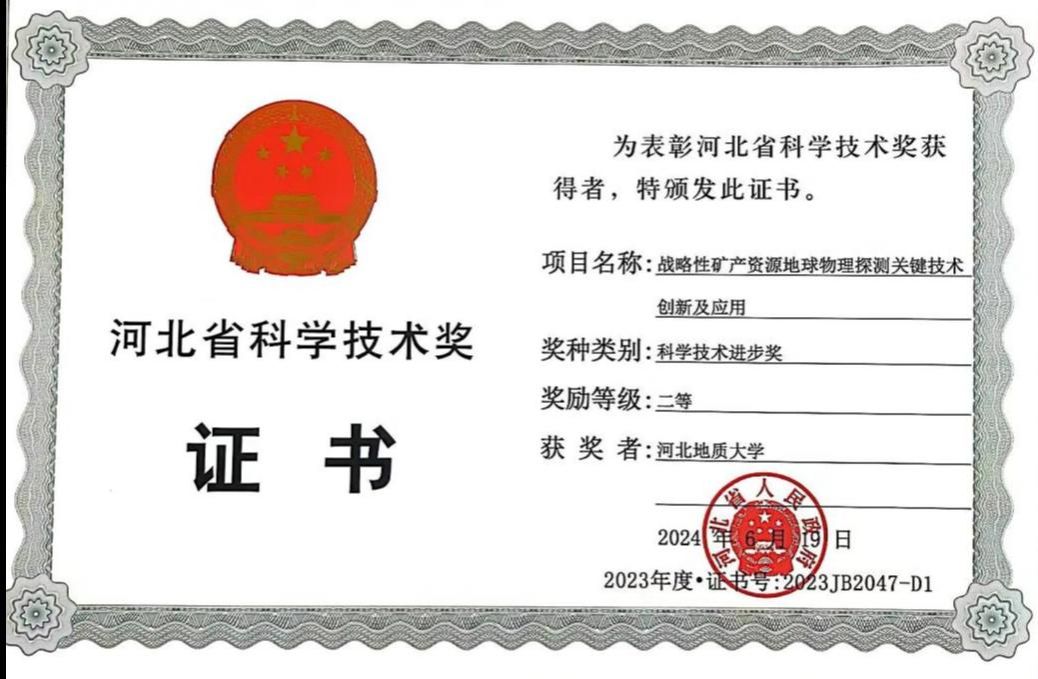 地球科学学院曹静杰教授主持的《战略性矿产资源地球物理探测关键技术创新及应用》项目获得河北省科学技术进步二等奖。该项目成果瞄准国家紧缺的战略性矿产资源需求,提出了系统的地震勘探高信噪比高分辨率处理技术,创建了激电场时间谱特征提取与解释技术,研发了井下瞬变电磁精细探测技术,形成了系统的矿产资源地球物理勘查理论与技术体系。