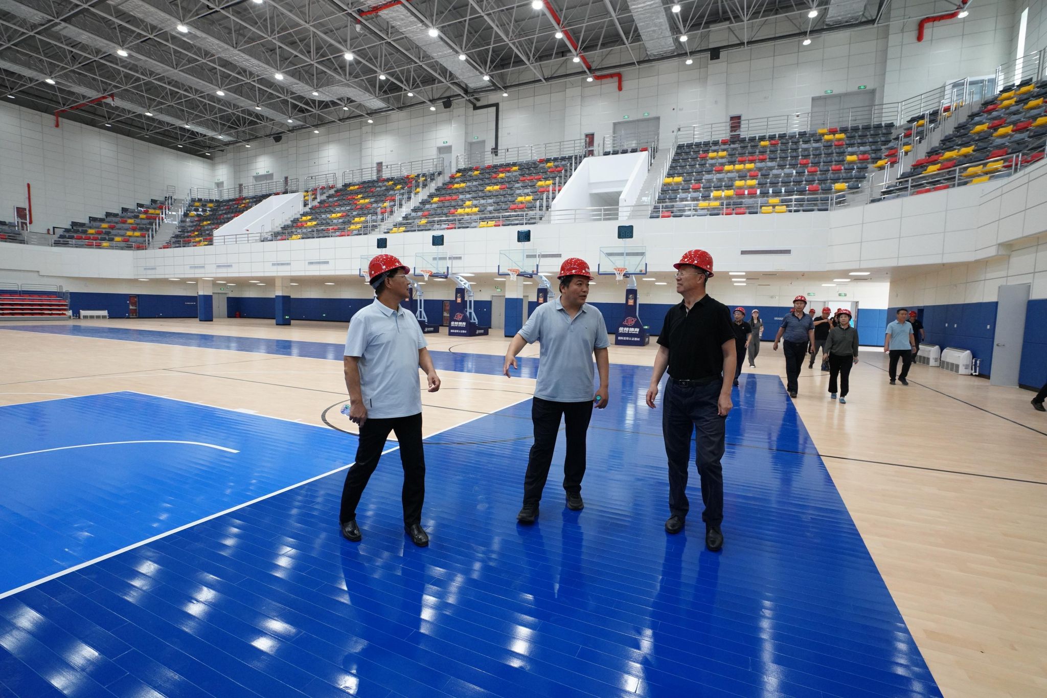8月15日下午,校领导和志强、任家东、冯玫、冯鸿雁、都沁军、李彦苍带队赴新校区调研检查,实地走访了体育馆、体育场、学生餐厅、办公楼、学生宿舍、学院楼、教学楼等工程建筑,全面了解开学前各项工程进度、教学生活设施配备及搬迁工作等情况,并对高温天气奋战在施工和搬迁一线的工人与教职工表示慰问和感谢。