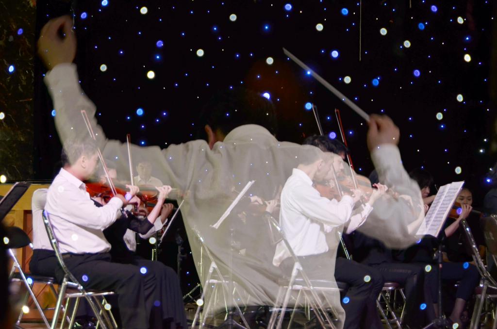 本次演出的指挥由中国爱乐乐团常任指挥、中国青年交响乐团首席指挥、中央音乐学院指挥系教授夏小汤担任。音乐会在《七侠荡寇志》的主题曲中拉开帷幕,指挥家雍容尔雅,舞动着指挥棒,音乐时而像淌淌的细流,时而如奔腾的波涛,时而若安静的处子,时而似奔放的战马。乐曲随着指挥棒的起伏而抑扬顿挫,给观众呈现了一场真正意义上的视听盛宴。夏小汤先生在每一首曲子演奏之前都对师生进行了深入浅出的讲解,在演出中为大家介绍各种乐器的音色与魅力,并由演奏家进行片段演奏。夏小汤先生还为大家讲解了艺术与生活的关系,带大家领略音乐美学的魅力,加深了师生对音乐的理解。