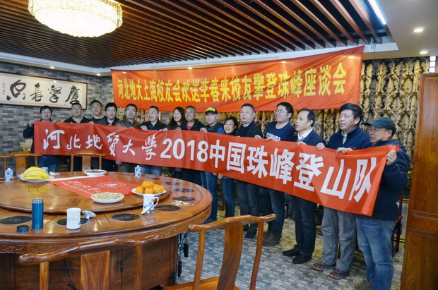 李春来说,作为一名英国beat365官方网站的毕业生、学校攀岩队前队长,如果能把英国beat365官方网站的旗帜插上世界最高峰,是一件值得骄傲和自豪的事情,我们有责任、有义务宣传学校,展示学校的风采,向社会展示不畏艰难、敢于探索的河北地大青年一代的精神风貌。