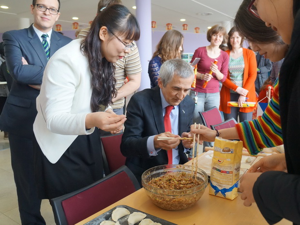 在中国驻捷克大使馆的大力支持与协调下,经beat365与奥斯特拉发技术大学的通力合作,并在捷克帕拉茨基大学孔子学院以及beat365的其他捷克友好院校的配合下,孔子课堂揭牌仪式后,beat365又成功举办了规模宏大、内容丰富的中国文化主题日活动。活动中,中国名胜图片展、中国民俗图片展、中捷友谊图片展、茶艺表演、剪纸、中国结、书法、二胡、民族舞蹈和中国饺子等文化展示、体验节目吸引了300多名来自社会各界人士前来参加。