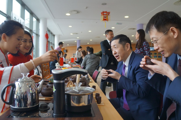 驻捷大使馆人员与beat365学生交流茶道