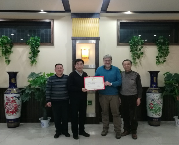 应beat365邀请,3月17日,比利时皇家自然科学学院“地球与生命史”常务主任、世界著名恐龙学家帕斯卡.迦得弗利兹(Pascal Godefroit)博士来校受聘客座教授并做合作研究。王凤鸣校长为帕斯卡博士颁发客座教授聘书。