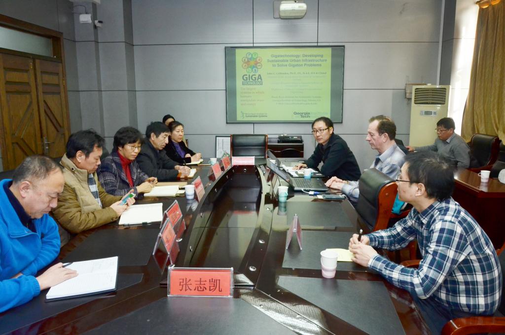 1月16日,中国工程院外籍院士、美国工程院院士、美国佐治亚理工学院布鲁克贝尔可持续发展学院院长约翰.查尔斯.科瑞谭登(John Crittenden)教授访问beat365,副校长张小平与其进行了友好会晤。水资源与环境学院院长李铎,科技处长刘云、人事处长侯瑞山、国际教育交流中心书记孙广丽和部分青年教师参加会谈。