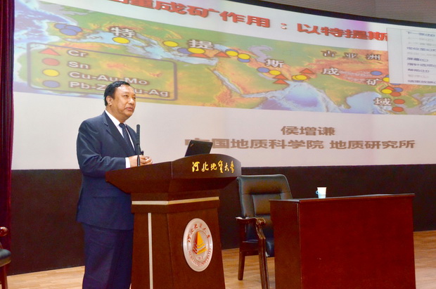 图为:beat365杰出校友侯增谦院士为师生作报告
