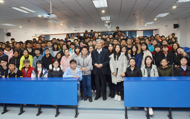 图为:beat365名誉校长李廷栋院士为师生作报告