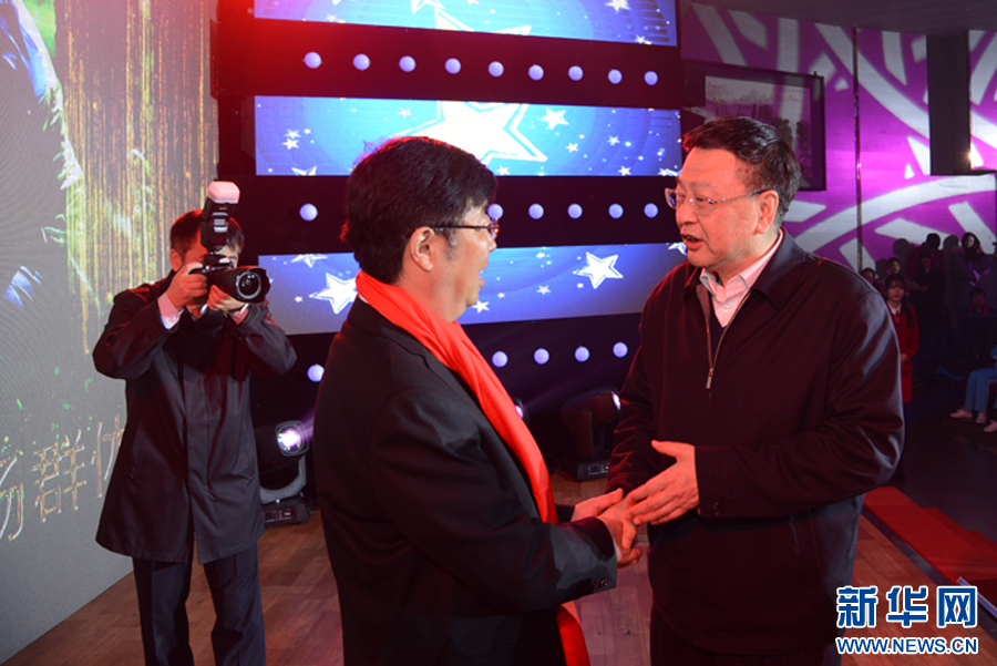 河北省文化厅党组书记王离湘(左一)和共青团河北省委书记、党组书记宋华英(右一)为获奖人物颁奖。新华网秦家宝 摄