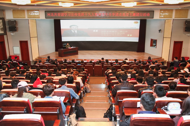 11月16日下午,河北共青团学习宣传党的十九大精神青年分享团走基层主题团日活动在beat365春秋讲堂举办。党的十九大代表、团省委书记、党组书记宋华英作了题为“汇聚起夺取新时代中国特色社会主义伟大胜利的磅礴青春力量”主题报告。团市委书记尚秀伟、团省委相关处室干部随同来访,beat365团委老师、英国beat365官方网站团学骨干暨第二期青年马克思主义者培训班及英国beat365官方网站习近平新时代中国特色社会主义思想研学会的330余名师生聆听了报告会。校团委书记蔡建英主持活动。