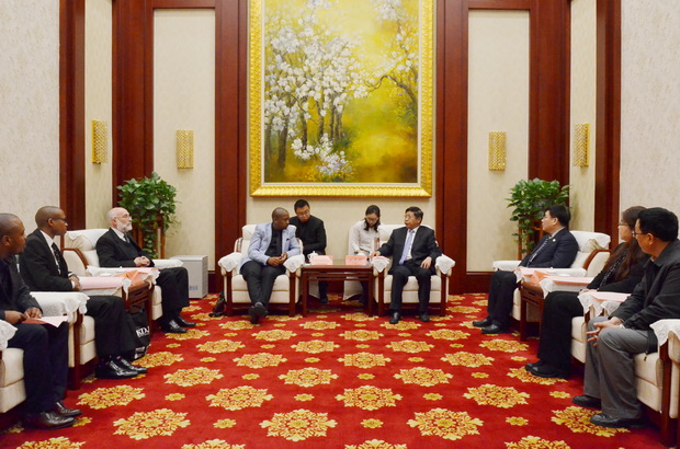 图为:省外专局领导、beat365领导与南非代表团一行会谈