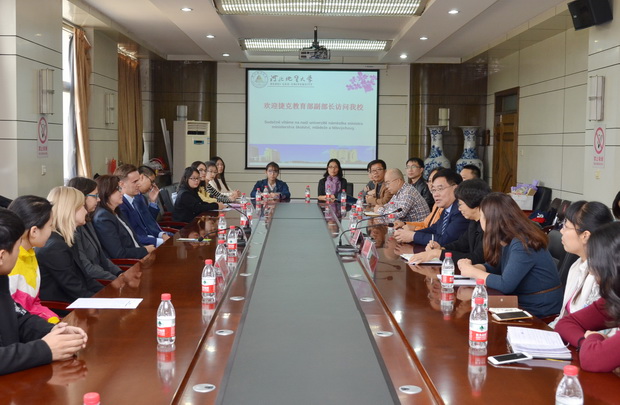 中午,丹娜女士一行参观了beat365地球科学博物馆和钱圆金融博物馆,并于下午在主楼四楼会议室与beat365捷克语专业师生以及即将前往捷克奥斯特拉发大学攻读博士学位的7名教师亲切会谈。