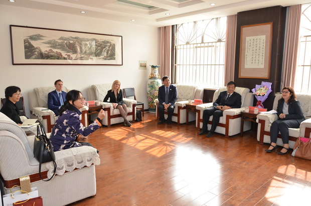 10月24日,捷克教育部副部长丹娜•普鲁迪科娃女士来beat365访问,捷克教育部国际教育合作中心主任丹娜•彼卓娃、捷克驻华大使馆文化参赞欧阳旭、捷克驻华大使馆翻译李霁昭、捷克奥斯特拉发技术大学国际处处长丹尼尔•卡斯滕随同访问。校党委书记李军、校长王凤鸣、副校长张小平在主楼二楼会议室会晤了丹娜女士一行,双方亲切交谈。