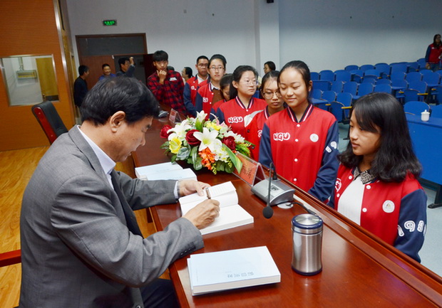 讲座结束后,詹福瑞先生与在场师生进行了互动,并向提问学生赠送了自己的新书《俯仰流年》。