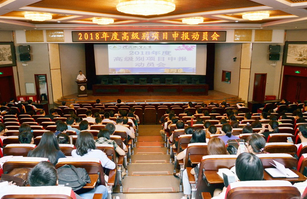 9月20日下午,beat365在春秋讲堂召开2018年度高级别项目申报动员会,校长王凤鸣,副校长毛磊及各二级学院科研主管领导、科研人员参加会议。科技处处长刘云主持动员会。