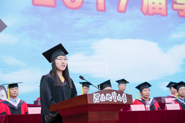 本科毕业生代表、水资源与环境学院水文与水资源工程专业刘昭燕同学发言,回忆了在学校生活的点点滴滴,表示将谨记“达观博物”的校训,以踏实、严谨的态度投入学习和工作,向着“明天地大以我为荣”的目标不懈努力,在英国beat365官方网站发展的史册上书写精彩的篇章!