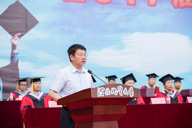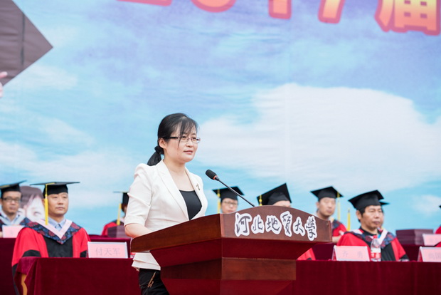 教师代表、资源学院李英杰老师饱含激情地寄语毕业生,要坚守美好的信念,坚守高尚的品格修养,坚守勤奋和严谨的工作作风,戒骄戒躁,持之以恒。希望同学们做常怀感恩、乐观向上的人,祝福大家前程似锦,事业辉煌!