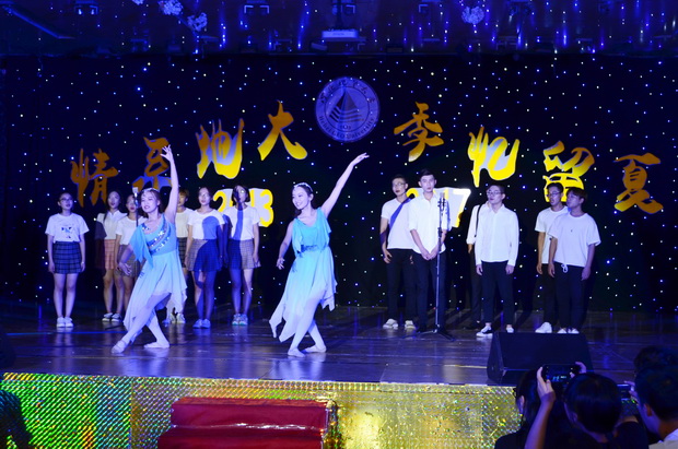 晚会在毕业生的祝福视频中拉开帷幕。激情四射的开场舞,瞬间将全场的热情点燃。整场晚会是毕业生的一场狂欢,台上台下互动表演,现场气氛热烈。天籁器乐团毕业生表演的《向着歌声传来的方向》,将毕业生对明天美好的期待用音乐完美的呈现;民舞团带来的《三生三世》舞姿优美,古典的气息扑面而来;尤博主持团独具匠心的脱口秀《地大,你好,再见》,从大一、大二代表有趣的发言,到大三到大四即将毕业分离的感慨,诙谐风趣,伤别离愁,感染了在场的每一位观众。毕业生辅导员们为大家带来了歌曲《启程》,用歌声表达了老师们对毕业学子们的殷殷期望和祝福。由毕业生演唱的《平凡之路》、《成都》等歌曲,用真挚的歌声唱出了深厚的情义,道出了对母校依依不舍之情,将晚会的气氛带向新的高潮;毕业生和艺术团的同学们共同表演的健美操、走秀、街舞,精彩纷呈,赢得热烈的掌声。大学生艺术团带来的歌曲《我们的明天》,与台下观众热情互动,全场一起用歌声传递祝福。晚会在劲爆的舞蹈《狂欢派对》中激情落幕。