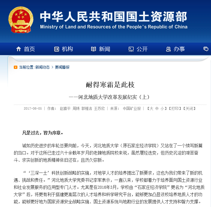国土资源部网站文章链接