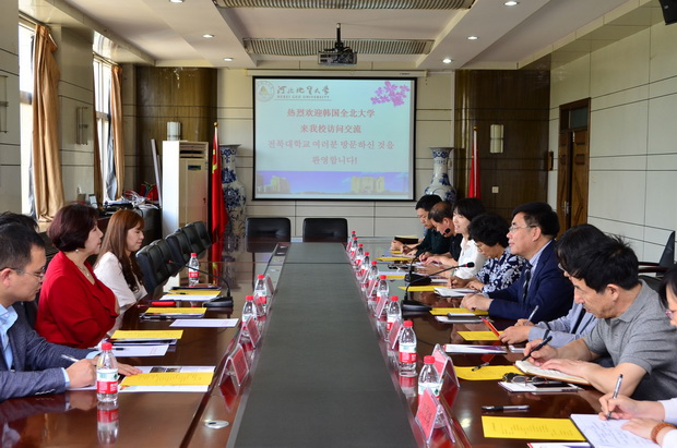 5月11日,韩国国立全北大学副校长尹明淑女士一行四人来beat365参观访问。上午,校长王凤鸣、副校长张小平亲切会见来宾并进行了友好会谈。校两办、人事处、教务处、国际教育交流中心、研究生学院的相关负责人参加了会谈。