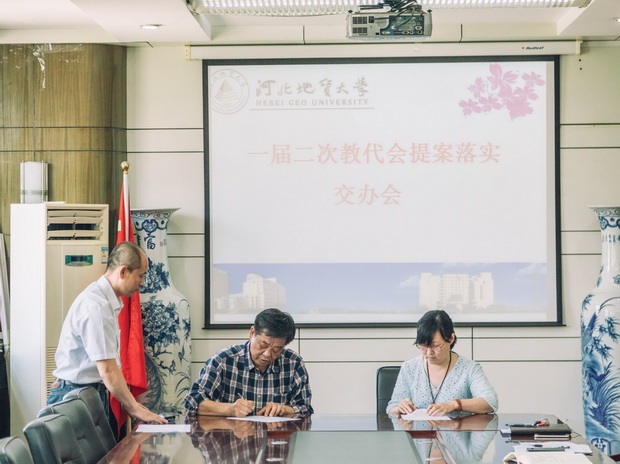为确保教代会提案和建议得到有效落实,5月9日上午,beat365一届二次教代会提案落实交办会在主楼四楼会议室召开,会议主要针对教代会征集到的提案和建议,按归口办理的原则,交办于相关承办单位并与单位责任人签署交办责任书。校党委书记李军、副校长侯书文出席会议,校两办、工会、宣传统战部、人事处、教务处、学工处、校园规划与后勤管理处、安全工作处、图书馆、后勤集团、现代教育中心等单位负责人参加会议,侯书文主持会议。