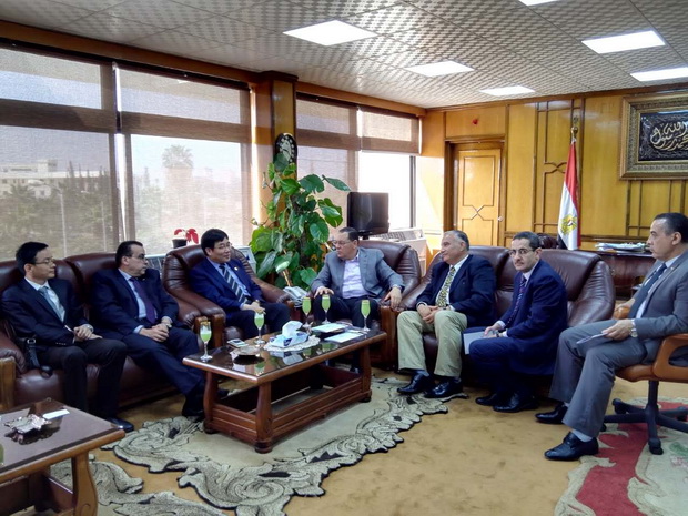埃及苏伊士运河大学校长古霍拉(左4)等会见beat365代表团