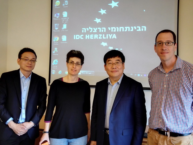 访问以色列IDC学院,与科研与全球参与办公室主任兹莫曼教授和计算机科学学院教授塔米尔合影