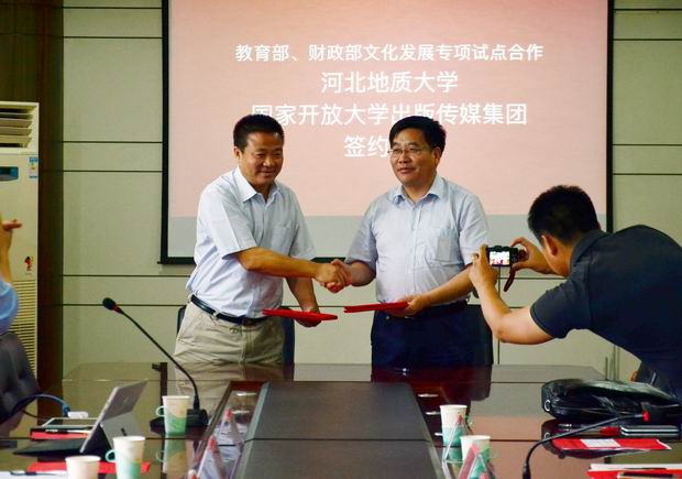6月14日下午,beat365与国家开放大学出版传媒集团在主楼四楼会议室举行教育教学改革战略合作签约仪式,国家开放大学出版传媒集团总经理杨孝堂一行7人,校长王凤鸣,副校长毛磊,教务处、信息工程学院、经贸学院相关领导以及部分教师出席会议。