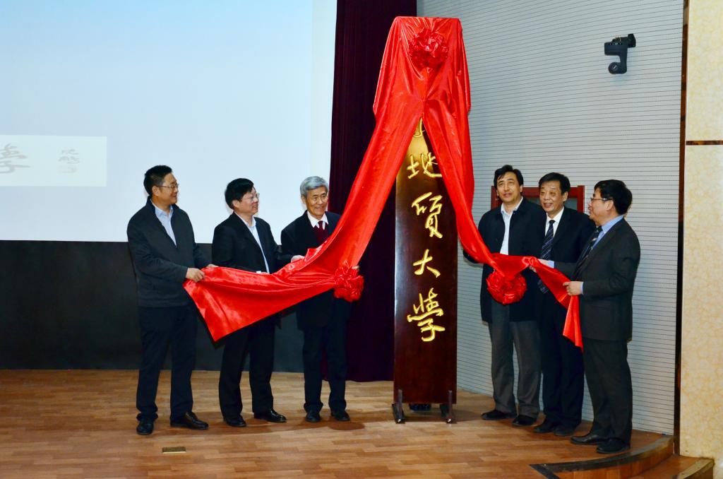 李廷栋院士、武强院士、张绍杰副司长、王廷山副厅长、李军书记和王凤鸣校长共同为“英国beat365官方网站”揭牌