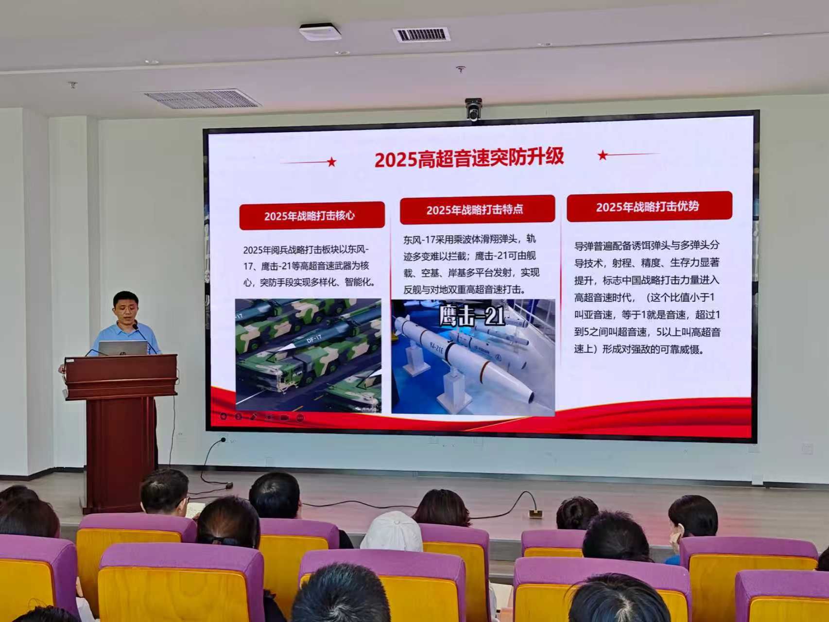 为纪念中国人民抗日战争暨世界反法西斯战争胜利80周年,学习习近平总书记在纪念大会上的重要讲话精神,马克思主义学院于9月4日下午,组织青年教师杨彪博士在图书馆二楼多媒体学习空间做了《从九三阅兵透视中国外交新格局》的主题报告,学院领导及全体教师、beat365部分学生参加,报告由马克思主义学院院长姚玉斐主持。