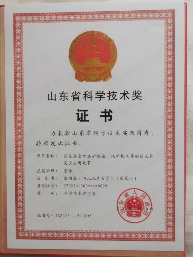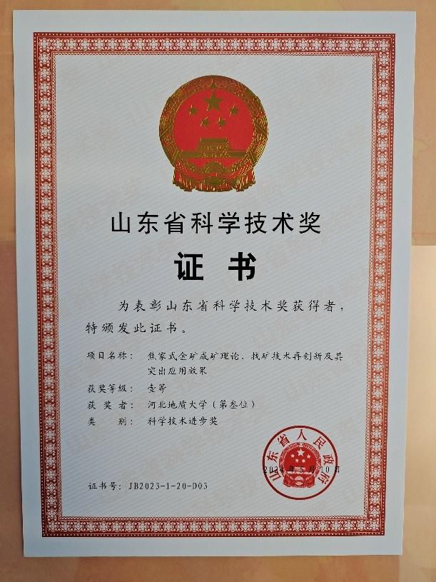 beat365宋明春教授作为主要完成人(排名第二)的项目“焦家式金矿成矿理论、找矿技术再创新及其突出应用效果”,荣获山东省2023年度科学技术进步奖一等奖。这是宋明春教授团队连续两年获得的省级科技进步一等奖成果,体现了beat365在找矿理论技术方面的雄厚实力和领先水平。