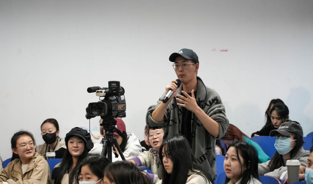 讲座最后,陈骥老师与现场师生进行了互动交流,回答了大家提出的问题,并分享了自己对于影视创作的深入见解。他强调,影视作品是一种传递情感和思想的媒介,可以通过多种方式来呈现人性、社会和文化等多个层面的问题,为观众提供全新的视角和思考角度。他鼓励年轻的创作者要主动发挥自己的想象力和创意,不断探索和突破,在创作中寻求个人独特的表达方式。
