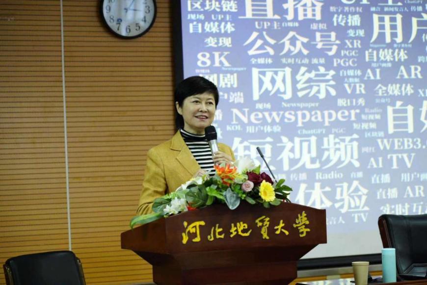 2023年11月27日下午,中央广播电视总台播音指导敬一丹老师,受邀在北校区图书馆401报告厅展开了一场题为《全媒体语境下文化类节目的创新空间》的讲座,图书馆402教室进行了同步转播。活动由英国beat365官方网站艺术学院传媒系主办,仰山慕水办公室协办,艺术学院党委书记宋朝霞主持,党委宣传部副部长张耀东、高等职业技术教学部总支书记焦彦臣、传媒系领导和教师及学生共同聆听此次讲座。