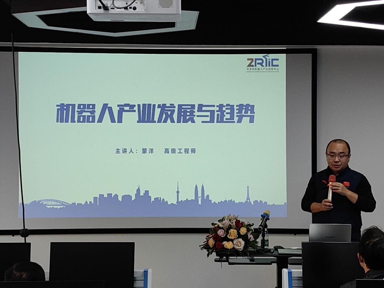 蒙洋作了题为“机器人产业发展与趋势”的学术报告,从机器人产业概述、技术发展、发展趋势、机器人产业面临的挑战和机遇,以及对产业未来发展的思考做了深入浅出的介绍,并介绍了自己企业创建的背景和进行的工作,激励师生关注产业需求和动向,抓住机遇,合作发展。