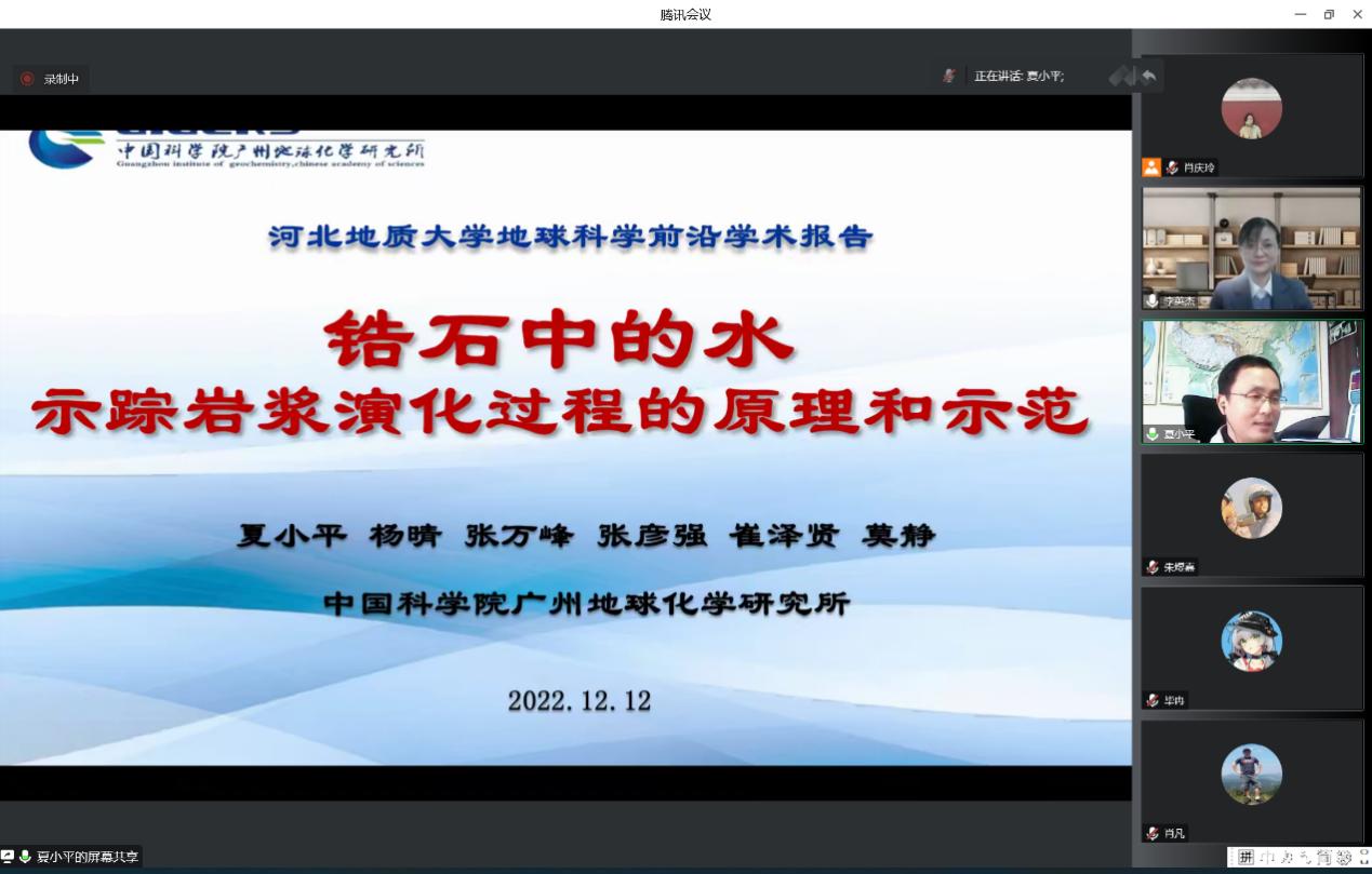 2022年12月12日,中国科学院广州地球化学研究所夏小平研究员应邀在腾讯会议为beat365师生作了题为“锆石中的水:示踪岩浆演化过程的原理和示例”的学术报告。中国科学院地质与地球物理研究所、中国科学院广州地球化学研究所、中国科学院地质研究所、西北大学、合肥工业大学、东华理工大学、中国地质调查局天津地质调查中心、河北省地质矿产勘查局、河北省地质调查院等十多家高校、科研院所和生产单位,以及beat365地学师生共200余人参加了此次学术报告。报告会由地球科学学院副院长李英杰教授主持。