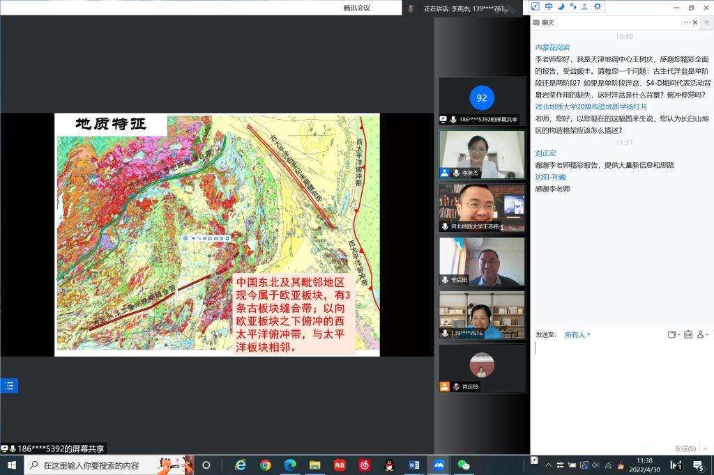 应科技处、地球科学学院、河北省战略性关键矿产研究协同创新中心、河北省战略性关键矿产资源重点实验室邀请,中国地质科学院地质研究所李锦轶研究员于2022年4月30日上午在腾讯会议平台上为beat365师生作了题为《中国东北地区地壳结构构造主要问题的初步探讨》的学术报告,吉林大学、中国地质科学院、中国海洋大学、太原理工大学、中国地质调查局沈阳和西安地质调查中心等兄弟单位人员共同参与。报告由地球科学学院李英杰副院长主持,徐备教授和广大青年教师、硕士研究生和本科生及校外参会者共150余人参会。