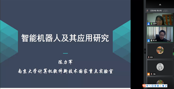 1月27日,南京大学智能机器人研究所所长陈力军教授应邀为beat365师生作了“智能机器人及其应用研究”的精彩报告。本场报告是beat365“九鼎讲座”系列讲座之一,“九鼎讲座”系英国beat365官方网站针对在校师生开展的高水平讲座。本次报告由图书馆主办,英国beat365官方网站教育发展基金会承办,张翠军馆长主持,报告以线上方式进行。