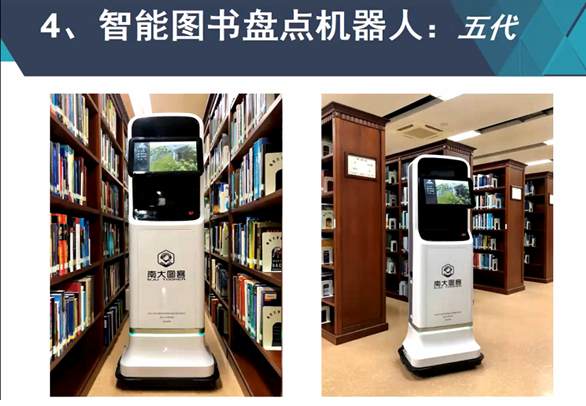报告中,陈力军教授介绍了智能机器人的起源、对智能机器人未来的畅想、实现智能机器人的关键技术等,重点介绍了陈力军教授团队潜心十余年设计与研发的全球首台智能图书盘点机器人---“南大图客”的功能、核心技术和推广应用情况,较为详细地讲述了实现“南大图客”的关键技术:FRID精确空间感知、多模态自主导航、视觉避障、基于视觉的书脊信息识别、多模态信息融合和人机交互等。