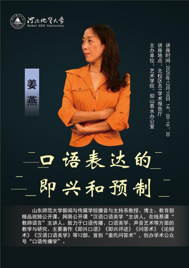 山东师范大学新闻与传媒学院播音与主持系教授姜燕,应邀来beat365北校区做主题讲座,欢迎广大师生踊跃参加。