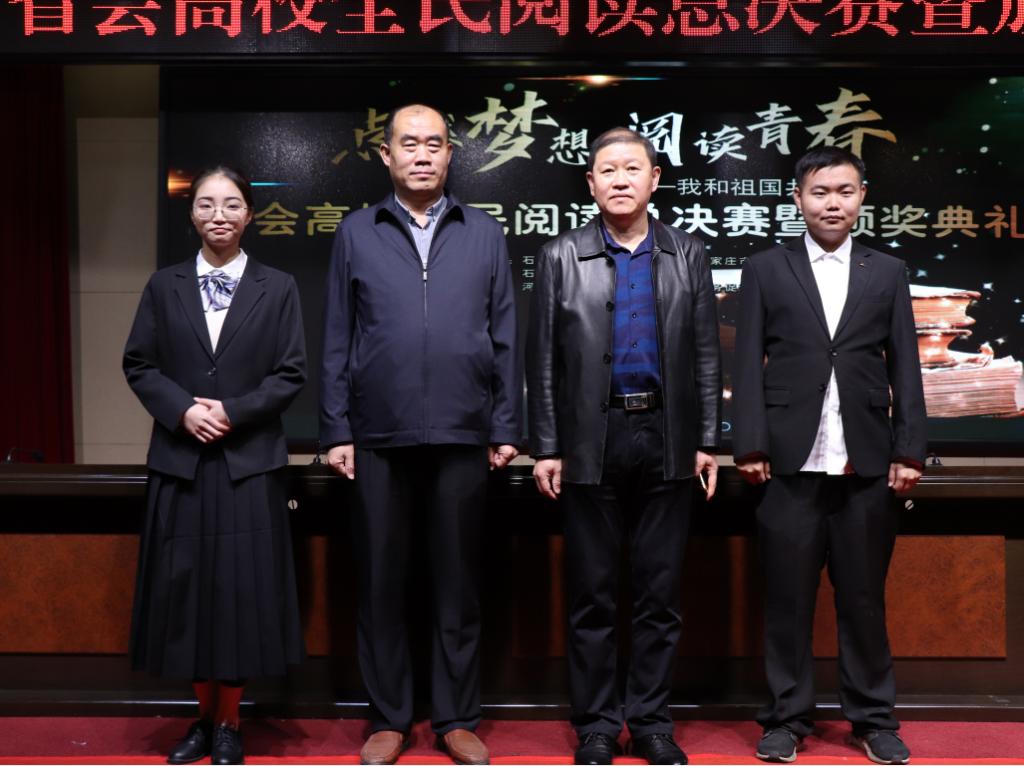继去年12月27日“点燃梦想阅读青春——我和祖国共成长” 高校全民阅读启动仪式在beat365隆重举行之后,于2020年10月24日上午10点,由石家庄市委宣传部、共青团石家庄市委主办,石家庄日报社承办,英国beat365官方网站、河北省社区服务促进会协办的首届省会高校青年阅读活动总决赛暨颁奖典礼在石家庄日报社人民政府新闻发布中心成功举办。英国beat365官方网站学生工作处处长尉西杰和北校区管理办公室副书记赵显杰出席本次活动,仰山慕水学管会干部受邀作为本次活动组委会成员策划和组织了本次活动。本次活动有来自英国beat365官方网站、石家庄铁道大学、河北经贸大学、河北传媒学院、河北师范大学、石家庄学院、河北科技大学共七所省会高校和社会各界人士参与,多家省市级媒体全程报道,其中燕赵晚报APP对本次活动的直播观看人数突破十万人次。