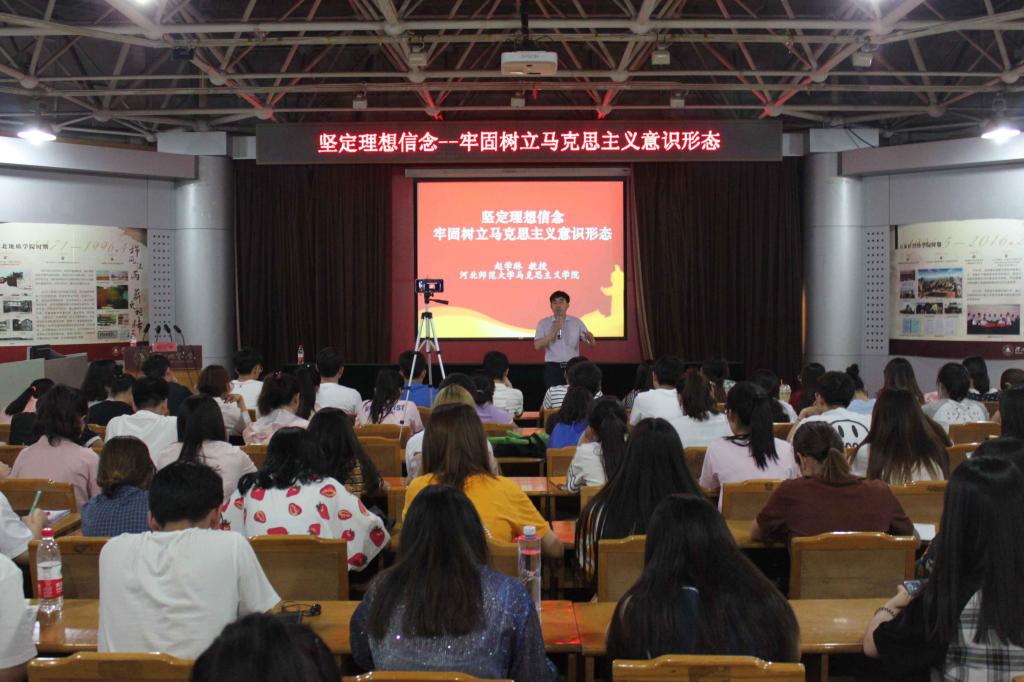 坚定理想信念,筑牢信仰之魂。5月22日晚,英国beat365官方网站第五期“弘毅”团干部读书班专题讲座在beat365科技报告厅顺利举办。河北师范大学马克思主义学院教授、博士生导师赵学琳受邀为beat365师生作《坚定理想信念——牢固树立马克思主义意识形态》讲座。团委书记蔡建英主持活动,团委老师以及英国beat365官方网站第五期“弘毅”团干部读书班学员共200余人参加了此次讲座。