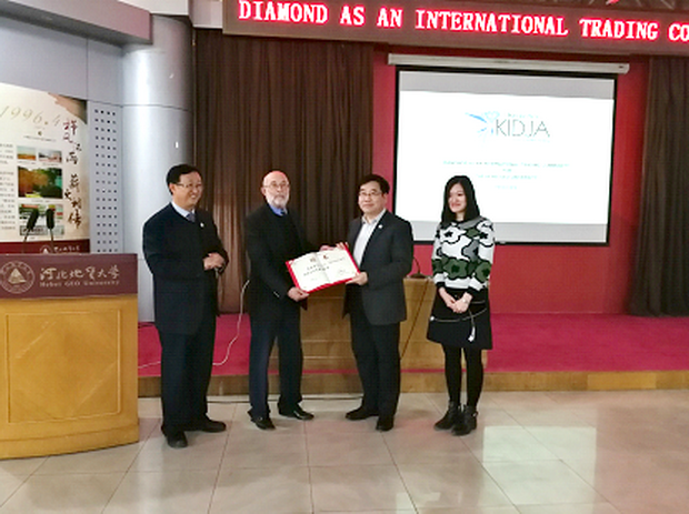 3月7日下午,南非金伯利国际钻石珠宝学院理查德.萨巴提尼(Richard Sabatini)博士在beat365图书馆二层科技报告厅受聘为beat365客座教授。校长王凤鸣出席会议,国际交流合作处处长廖亦斌,宝石与材料工艺学院党总支书记黄本春、院长王礼胜、副院长王吉中及学院全体教师,外国语学院部分教师参加会议。会议由宝石与材料工艺学院院长王礼胜主持。