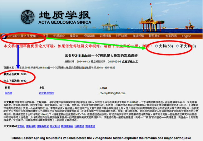 附:2017年10月11日《地质学报》官网截屏